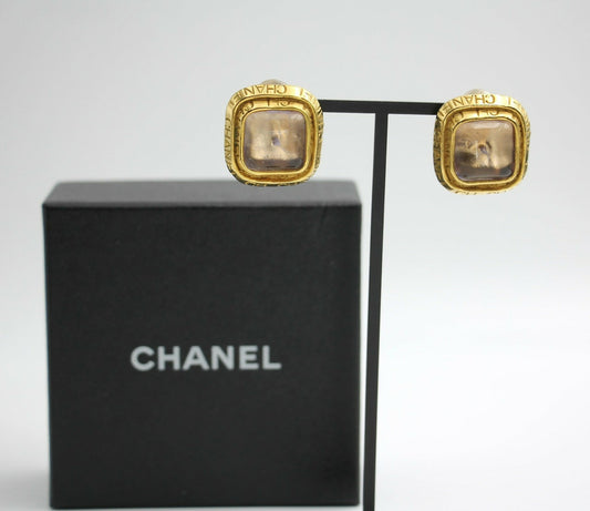 Chanel Vintage 96P Gripoix Gold-plated Fantasy Pink & Purple Square Clip-on Earrings