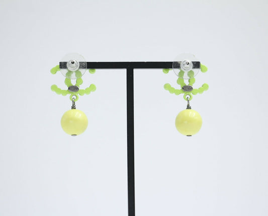 Chanel Vintage 04A Resin Fluorescent Green and Yellow Dangle Stud Earrings