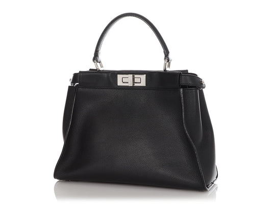 FENDI Fun Fair Kan I Vitello Liberty Leather Shoulder Bag Black