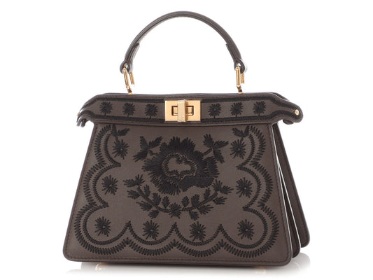 Fendi Gray Floral Embroidered Petite Peekaboo ISeeU