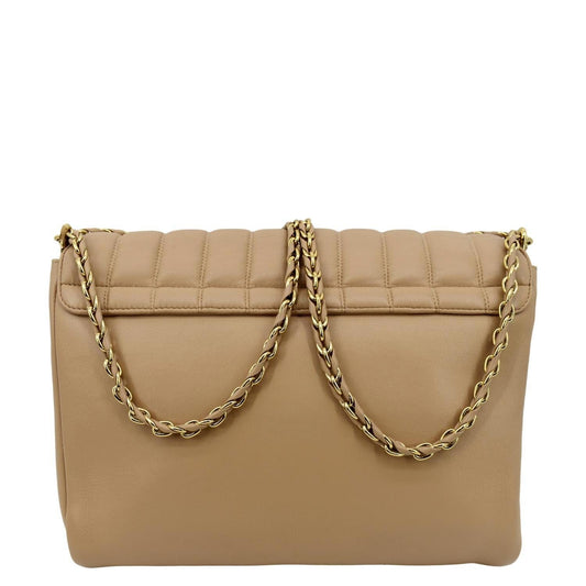 FENDI Baguette Leather Chain Shoulder Bag Light Beige