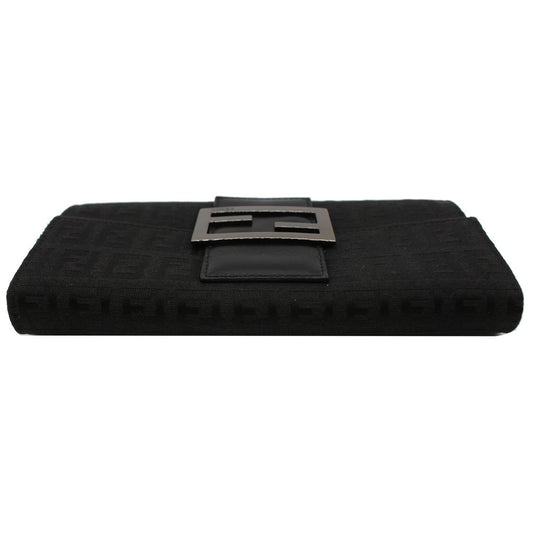 FENDI Zucchino Monogram Canvas Long Bi-Fold Wallet Black