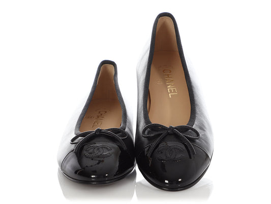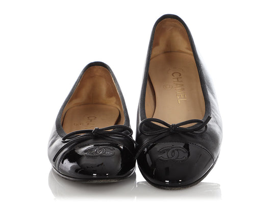 Chanel CC Black Suede and Leather Ballet Flats 39