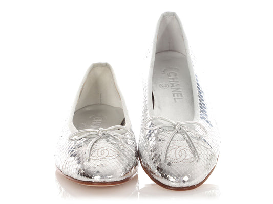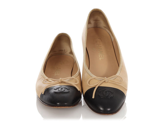 Chanel Beige Quilted Leather CC Bow Ballet Flats EU 38.5