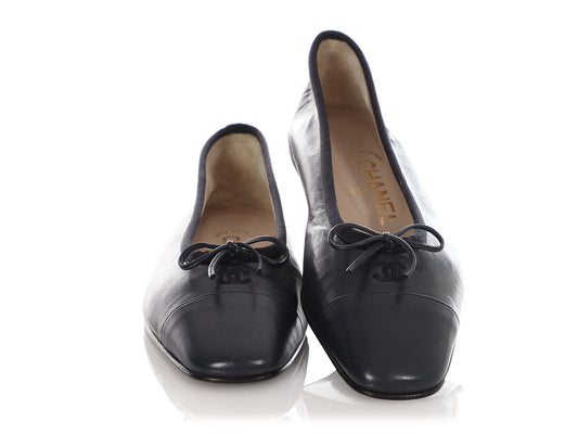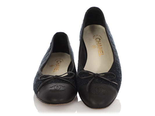Chanel CC Dark Navy Blue Lambskin Ballet Flats 37