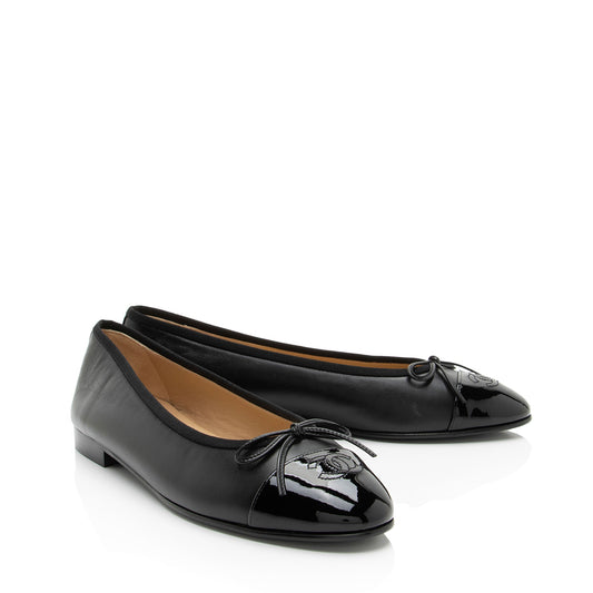 Chanel Patent Calfskin CC Cap Toe Ballet Flats - Size 10.5 / 40.5