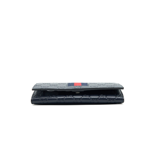 Gucci Men's Signature Web Leather Long Wallet In Dark Navy