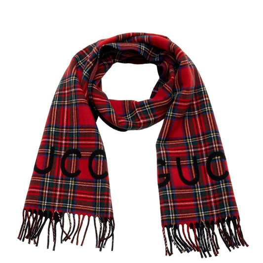 Gucci Wool Cashmere Check Logo Reversible Scarf (SHF-gMwPXo)