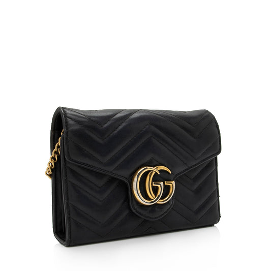 Gucci Matelasse Leather GG Marmont Mini Chain Shoulder Bag (SHF-KHf4XN)
