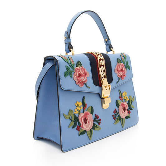 Gucci Embroidered Leather Floral Sylvie Top Handle Bag (SHF-7G6W1J)