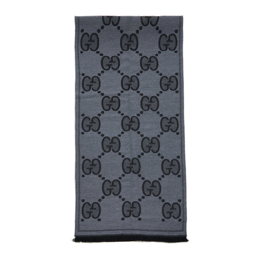 Gucci GG Printed 100% Wool Scarf Grey 45x195cm