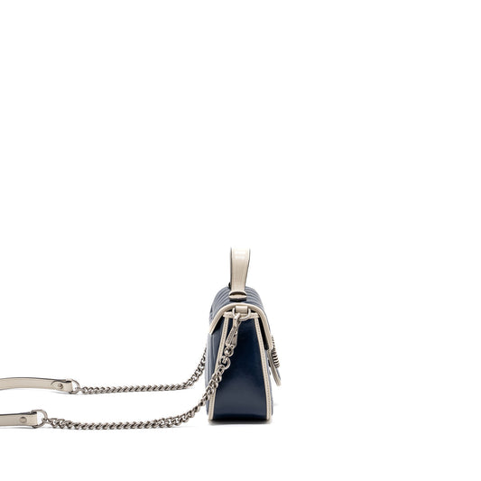 Gucci GG Marmont Top Handle Bag Calfskin Navy/ White