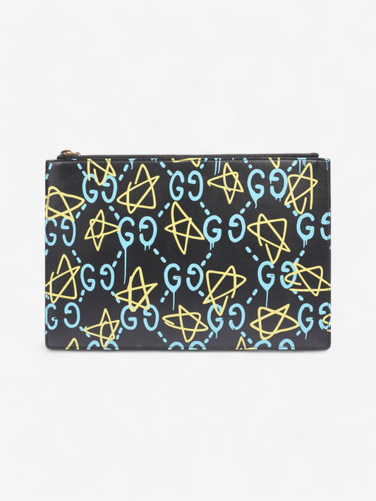 Gucci Ghost Clutch Black / Blue / Yellow Calfskin Leather
