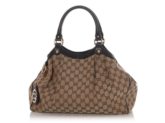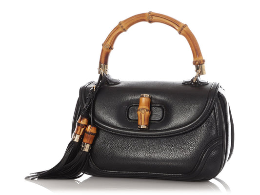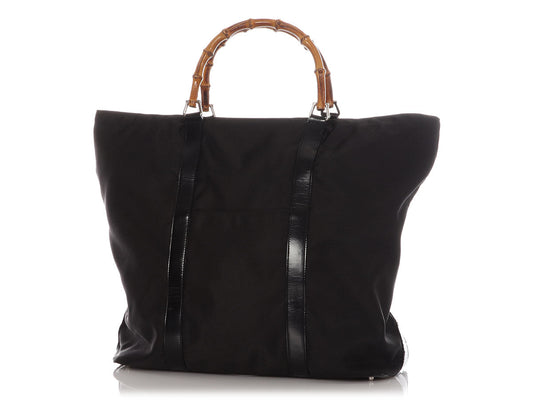 Gucci Black Leather-Trimmed Nylon Bamboo Handle Tote