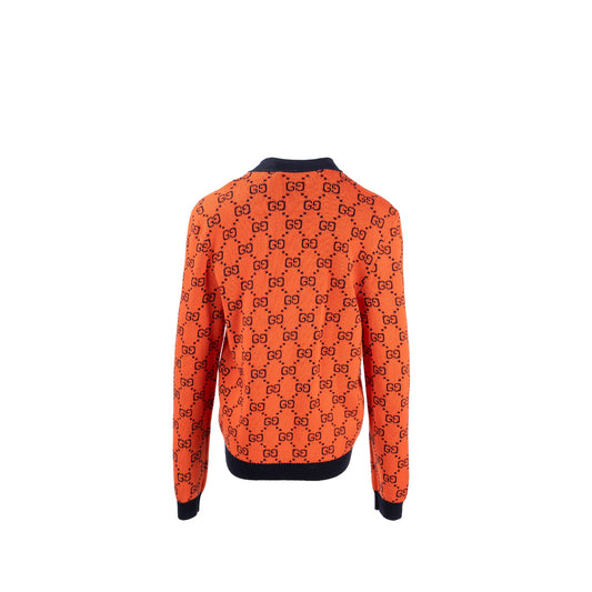 Gucci Size XS GG Jacquard Cardigan Wool/Cotton Orange