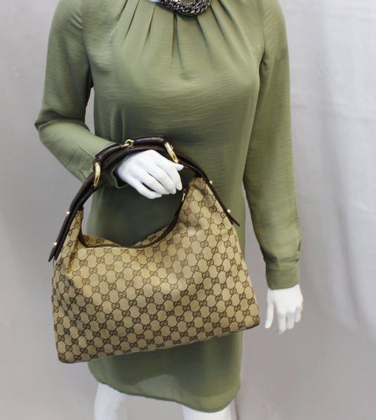 GUCCI Beige GG Canvas Medium Horsebit Hobo Bag