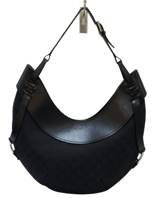 GUCCI GG Canvas Half Moon Black Hobo Bag