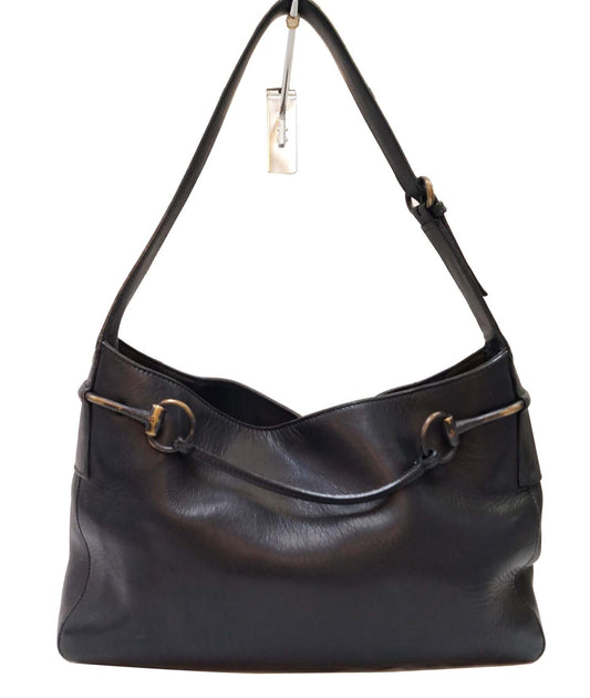 GUCCI Black Leather Horsebit Shoulder Bag 101975