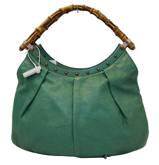GUCCI Green Leather Bamboo Top Handle Shoulder Bag