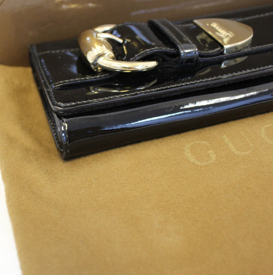 GUCCI Patent Leather Black Romy Clutch Wallet 181544