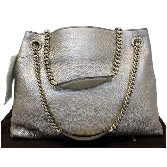 GUCCI Soho Pebbled Leather Chain Shoulder Bag 308982 Silver