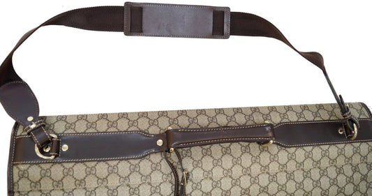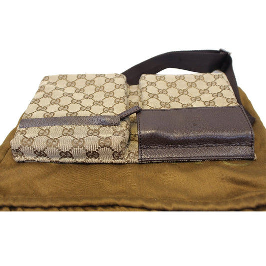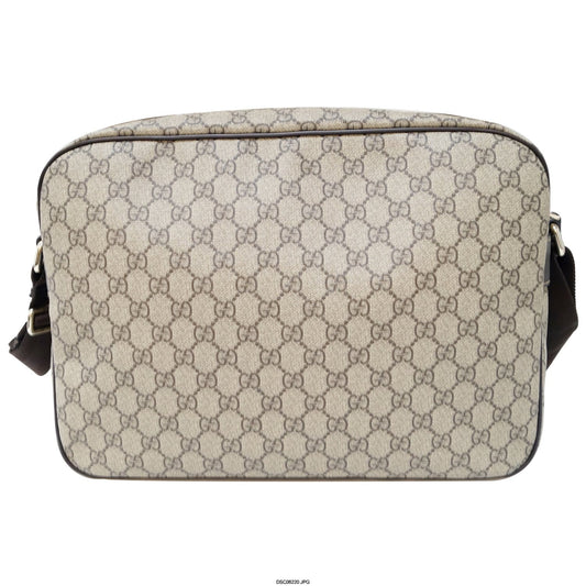 GUCCI Men's Beige/Ebony GG Plus Coated Canvas Messenger Crossbody Bag 211107