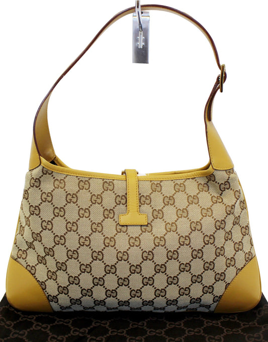 GUCCI GG Canvas/Leather Jackie Shoulder Hobo Bag