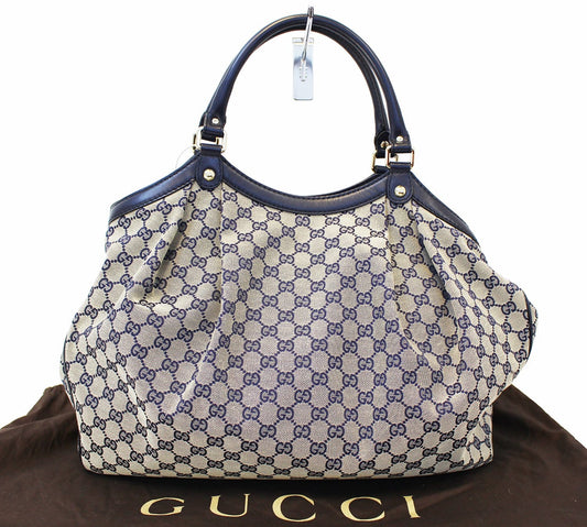 GUCCI Navy Blue/Grey GG Canvas Large Sukey Tote Bag