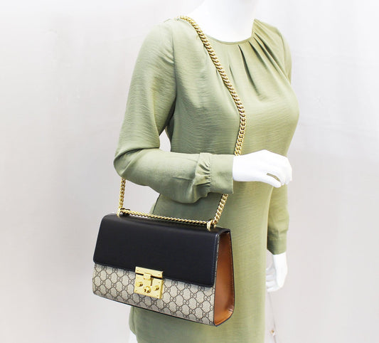 GUCCI GG Supreme Beige/Black Padlock Medium Shoulder Bag