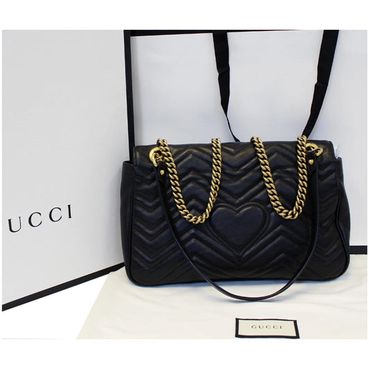 GUCCI GG Marmont Matelasse Leather Shoulder Bag Black 443496