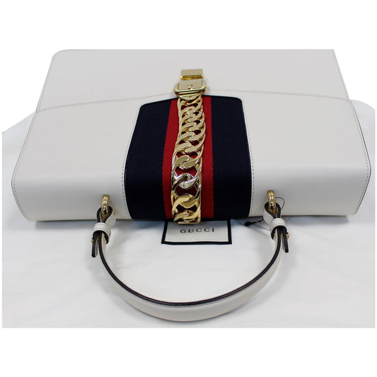 GUCCI Maxi Sylvie Calfskin Top Handle Bag White 477631