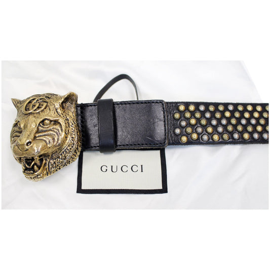 GUCCI Feline Head Studded Leather Belt Black 451224 - 15% OFF