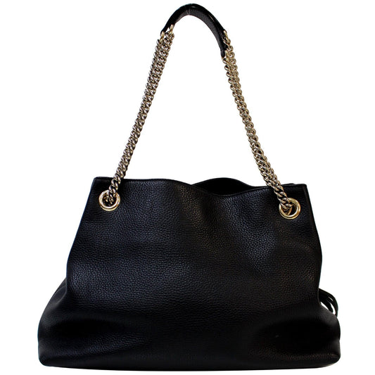 GUCCI Soho Pebbled Leather Chain Shoulder Bag 308982 Black