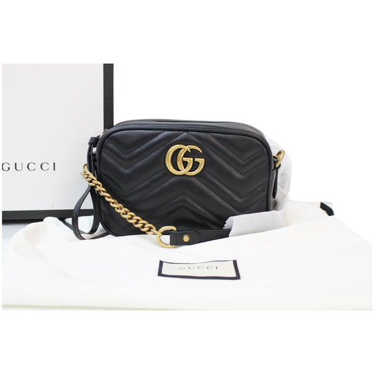 GUCCI GG Marmont Matelasse Mini Leather Crossbody Bag Black 448065