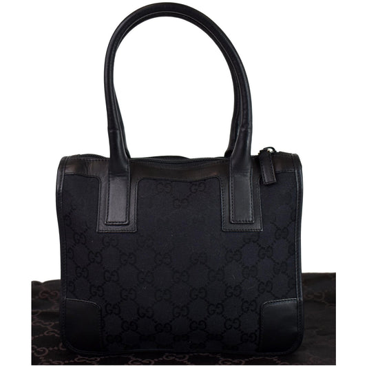 GUCCI Micro GG Top Handle Leather Tote Bag Black 000.0856