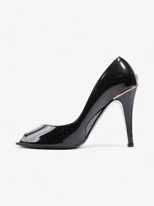 Chanel CC Logo Peep Toe Heels 85mm Black Patent Leather EU 38.5 UK 5.5