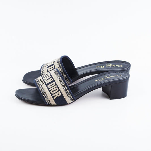 Chanel Size 36.5 Pearl Heel Mule Leather Beige/Black