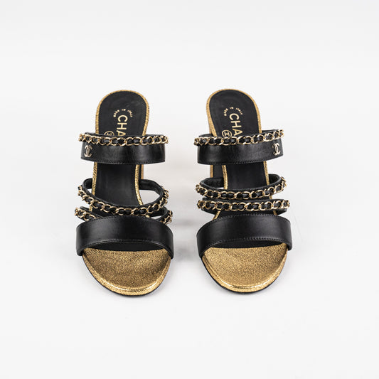 Chanel Quilted Heels Cork lambskin Black (Size 39.5)