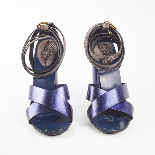Gucci Snakeskin Ankle Strap Heels Blue Size 41