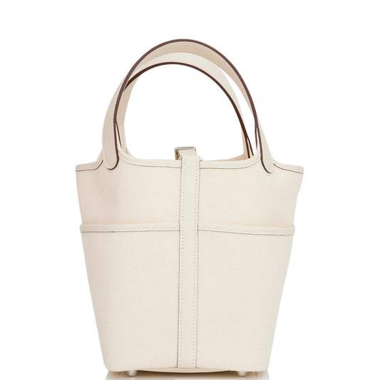 Hermes Picotin Cargo 18 Nata Swift and Toile Canvas Palladium Hardware