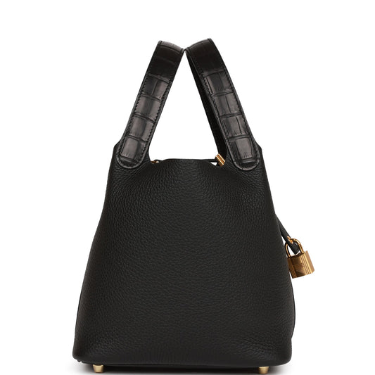 Hermes Picotin Lock 18 Black Matte Alligator and Clemence Touch Gold Hardware