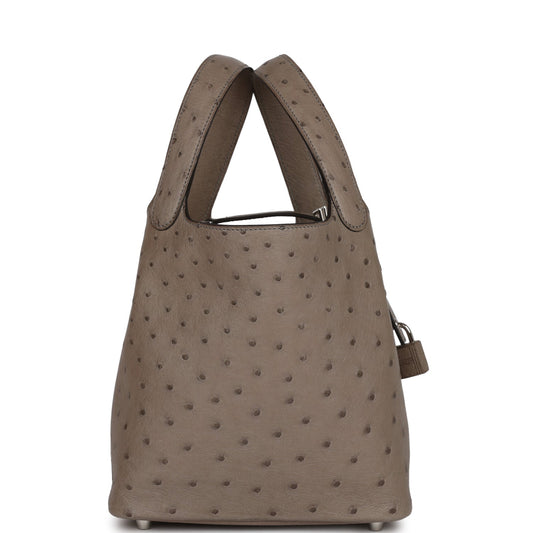 Hermes Picotin Lock 18 Gris Tourterelle Ostrich Palladium Hardware