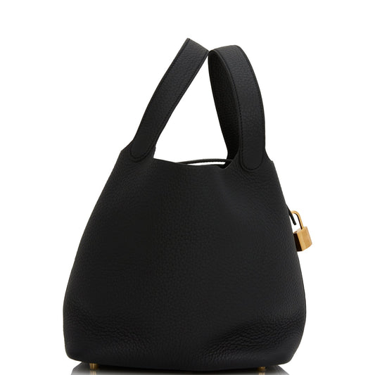Hermes Picotin Lock 22 Black Clemence Gold Hardware