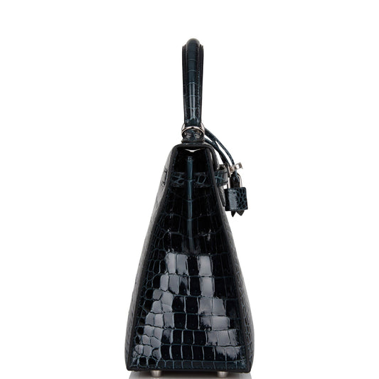 Hermes Kelly 25 Sellier Vert Rousseau Shiny Niloticus Crocodile Palladium Hardware