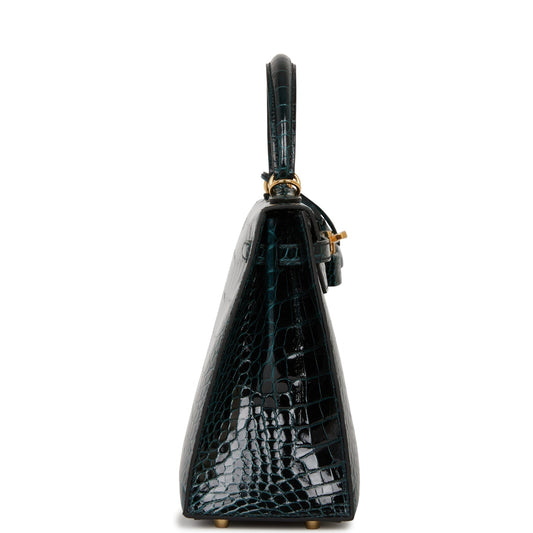 Hermes Kelly 25 Sellier Vert Rousseau Shiny Alligator Gold Hardware