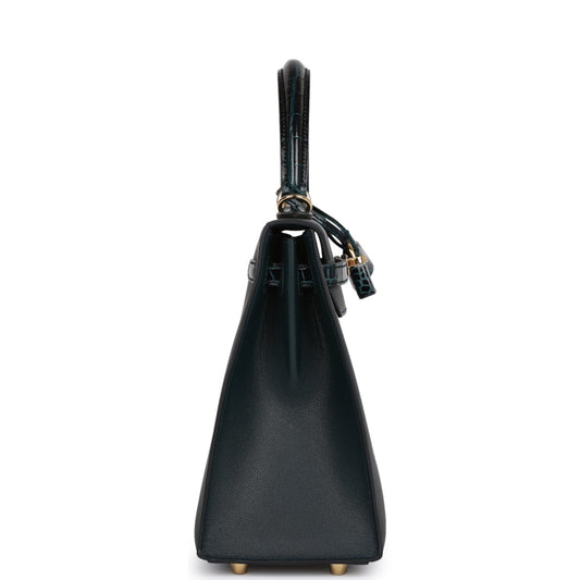 Hermes Kelly 25 Sellier Vert Rousseau Madame and Shiny Niloticus Crocodile Touch Gold Hardware