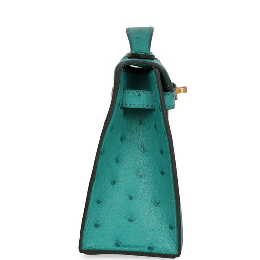 Hermes Kelly Pochette Vert Verone Ostrich Gold Hardware