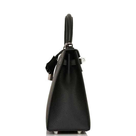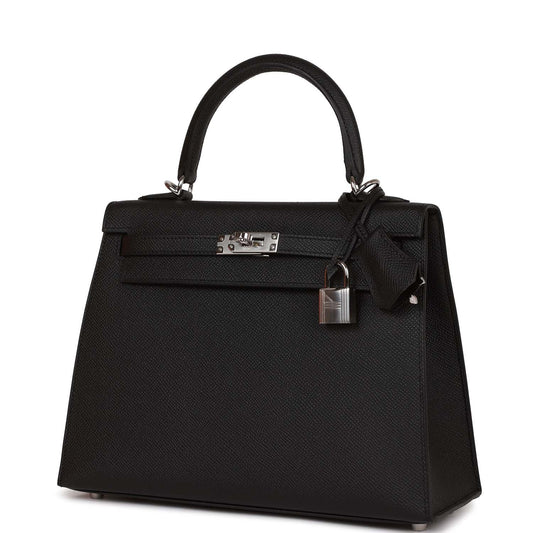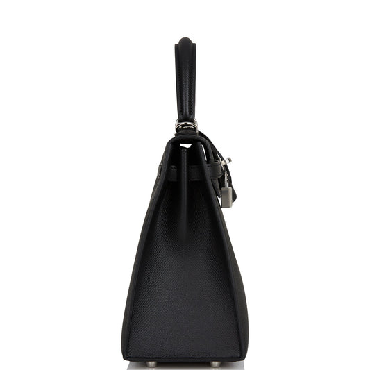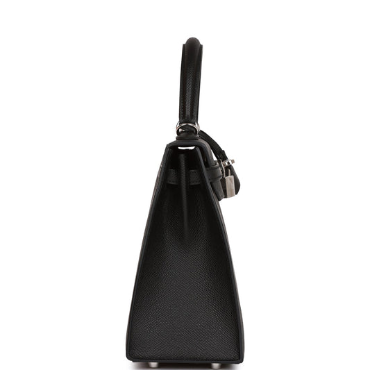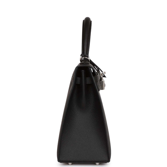 Hermes Kelly 25 Sellier Black Epsom Palladium Hardware