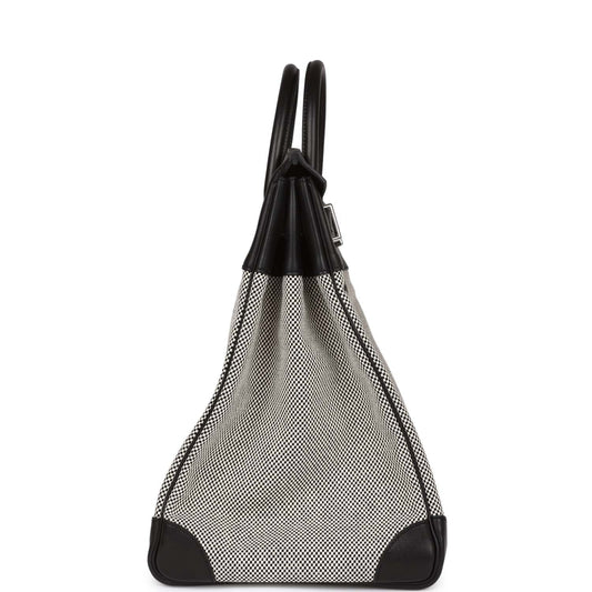 Hermes Birkin 40 HAC Black Evercolor and Toile Palladium Hardware
