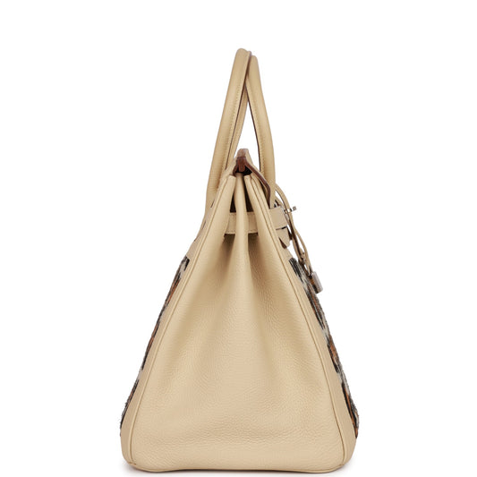 Vintage Hermes Birkin 35 Parchemin Togo and Leopard Troika Palladium Hardware